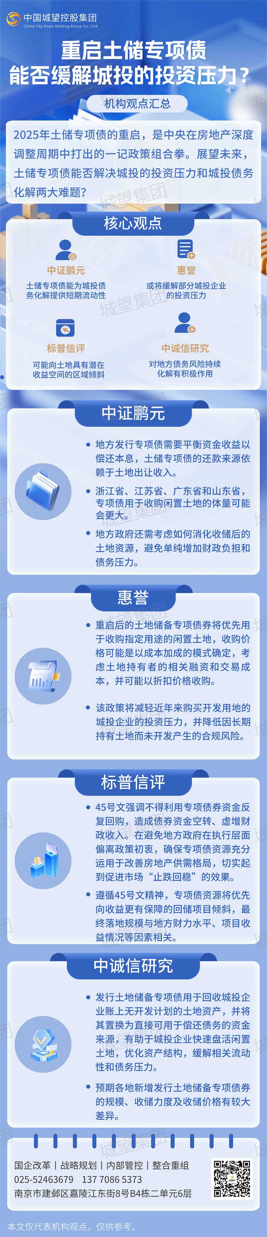 需注意的是,地方發(fā)行專項(xiàng)債需要平衡資金收益以償還本息,土儲(chǔ)專項(xiàng)債的還款來源依賴于土地出讓收入,地方政府還需考慮如何消化收儲(chǔ)后的土地資源,避免單純?cè)黾迂?cái)政負(fù)擔(dān)和債務(wù)壓力,未來其成效仍取決于資產(chǎn)定價(jià)博弈、地方政府的資源整合能力及土地市場的復(fù)蘇節(jié)奏。