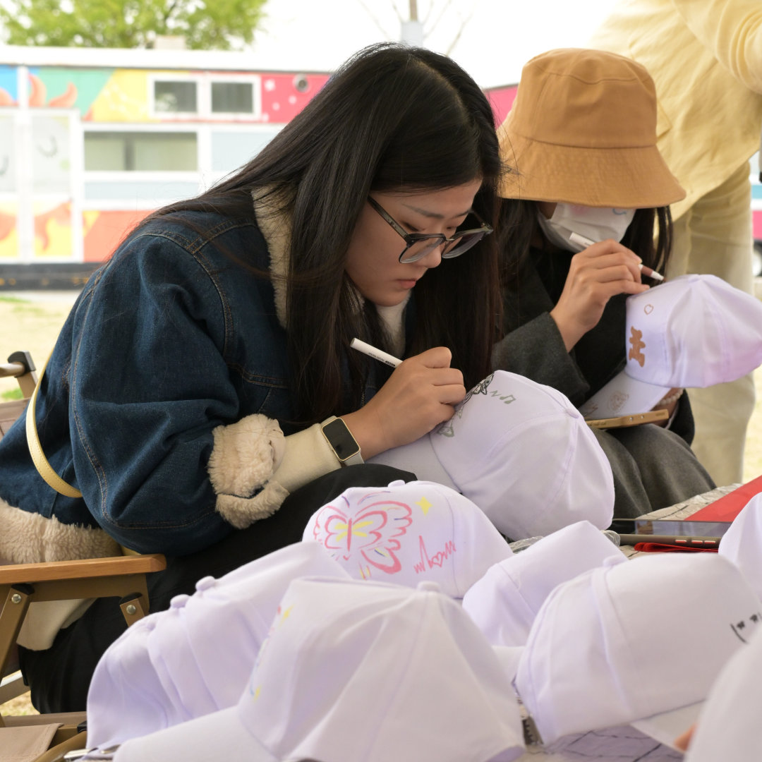 魚嘴濕地公園的柳浪聞鶯間,大家三五成群開啟午后時光。棋牌組在涼亭下運(yùn)籌帷幄、決勝千里;攝影組在江豚躍水的粼粼波光中尋找“江流天地外”之境;K歌組的歌聲在江畔回響;繪畫組在純色帆布帽上揮灑靈感,有人描繪小王子和玫瑰花的身影,有人在帽檐繪就“三山半落青天外”的意境畫,還有人將公司logo與長江波濤巧妙融合。