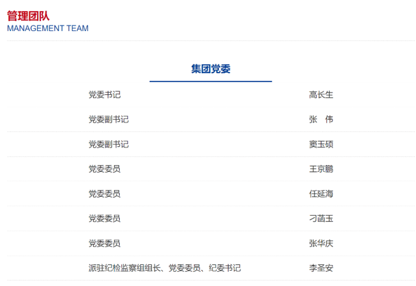 其余集團黨委成員中,竇玉碩任黨委副書記、董事,王京鵬任黨委委員、副總經(jīng)理,任延海任黨委委員、副總經(jīng)理,刁菡玉任黨委委員、副總經(jīng)理,張華慶任黨委委員、副總經(jīng)理,李圣安任派駐紀檢監(jiān)察組組長、黨委委員、紀委書記。