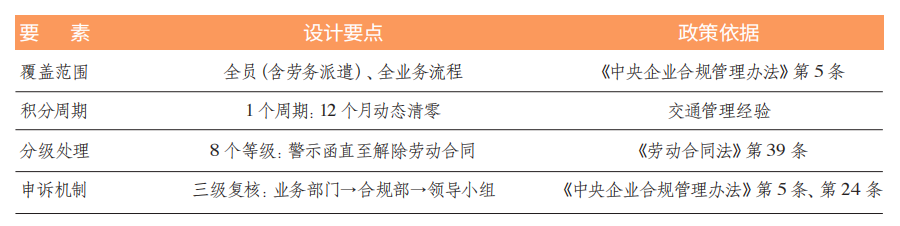 設(shè)計制度框架主要內(nèi)容如下表所示,涵蓋了定義、適用對象、使用范圍、記分周期、處理機(jī)制、政策依據(jù)等要素。