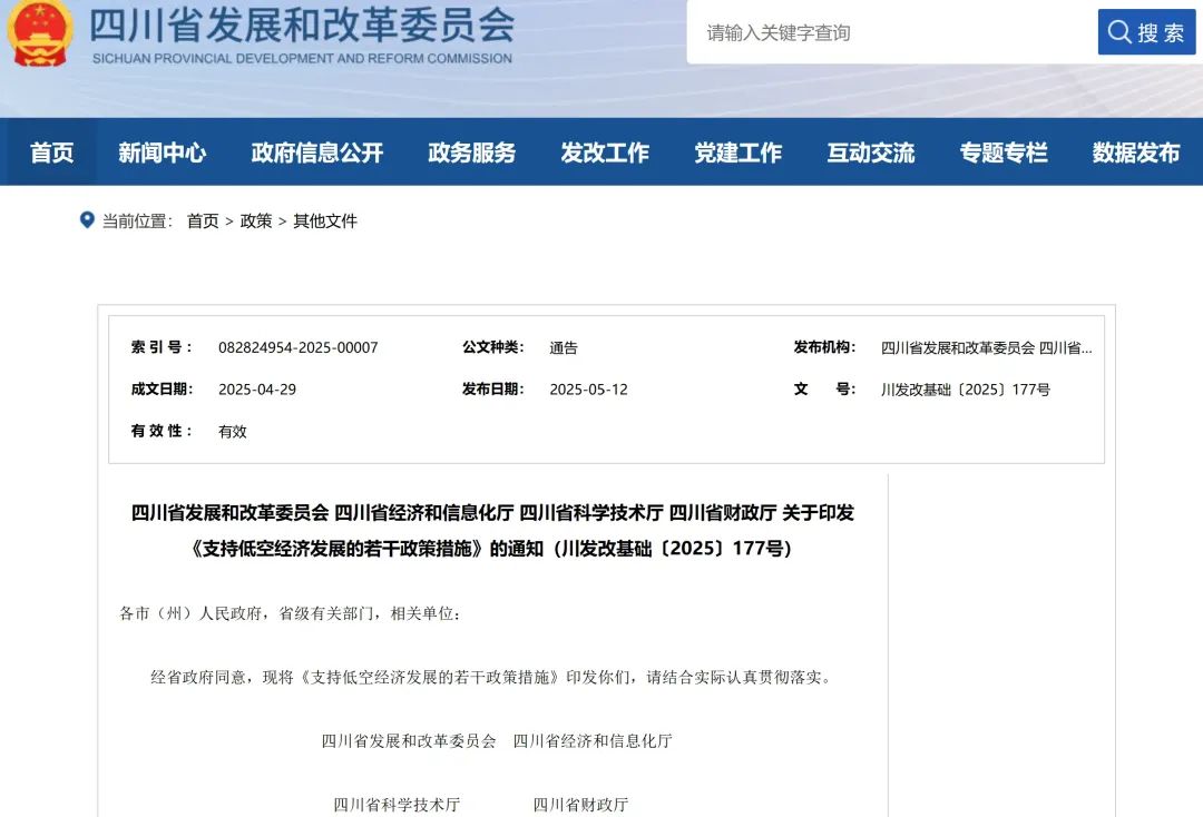 四川發(fā)布低空經(jīng)濟(jì)16條發(fā)布!單項(xiàng)獎(jiǎng)補(bǔ)高達(dá)3500萬元!真金白銀支持低空經(jīng)濟(jì)(附全文)