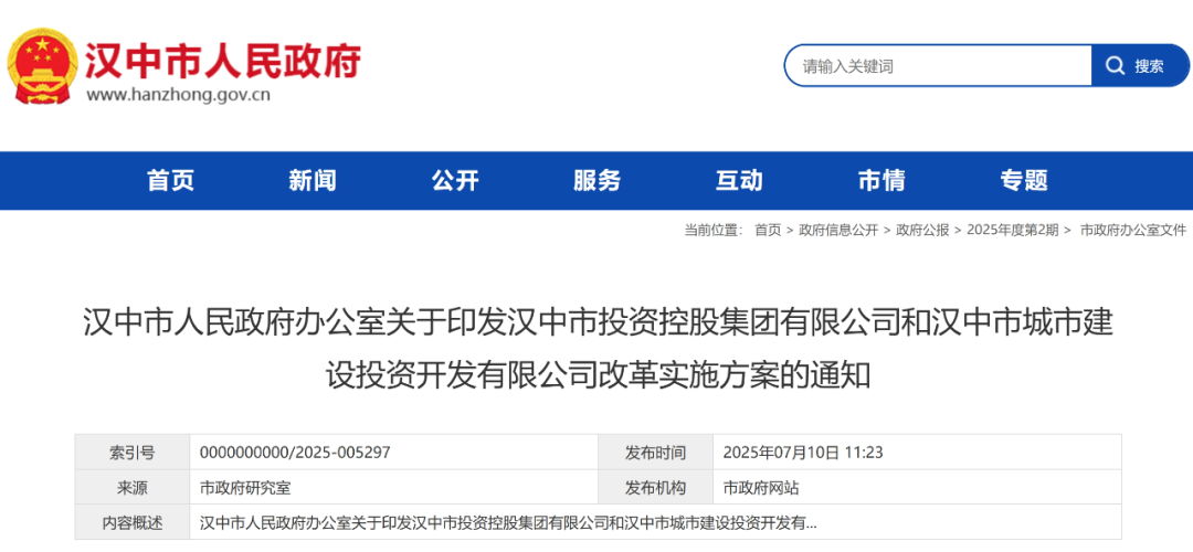 據(jù)漢中市政府,關(guān)于印發(fā)漢中市投資控股集團有限公司和漢中市城市建設(shè)投資開發(fā)有限公司改革實施方案的通知。