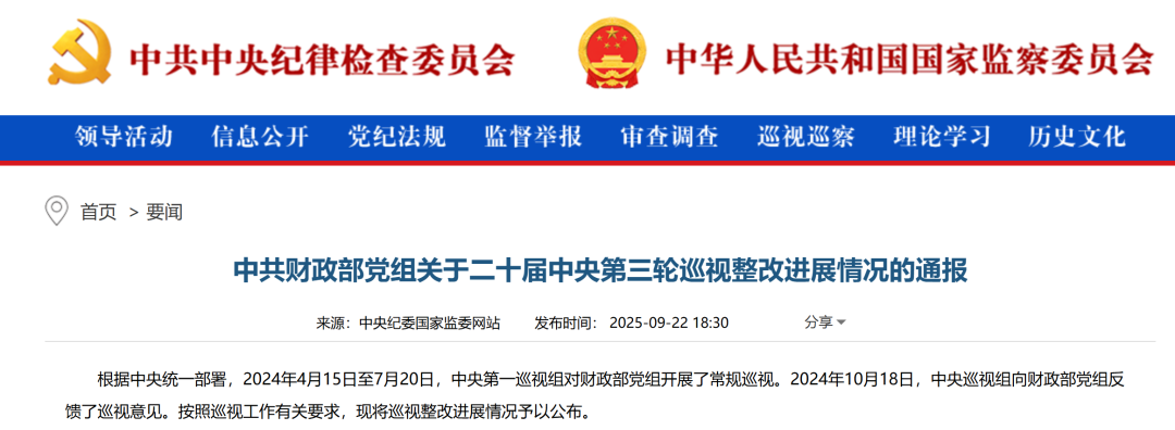 財(cái)政部巡視整改通報(bào):聚焦招投標(biāo)整治等各類整改問(wèn)題,扎實(shí)開(kāi)展“十五五”規(guī)劃前期謀劃