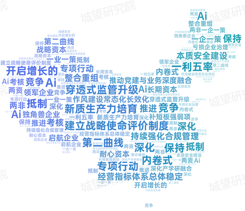 縱觀2025年國(guó)務(wù)院國(guó)資委召開(kāi)的二十一場(chǎng)重要會(huì)議,2025年國(guó)企改革在延續(xù)深化提升行動(dòng)的基礎(chǔ)上,提出了一系列具有戰(zhàn)略導(dǎo)向和實(shí)踐創(chuàng)新的新提法,核心聚焦于培育新動(dòng)能、重塑治理體系、優(yōu)化監(jiān)管模式等關(guān)鍵領(lǐng)域,強(qiáng)調(diào)新質(zhì)生產(chǎn)力培育、穿透式監(jiān)管升級(jí)、建立戰(zhàn)略使命評(píng)價(jià)制度、深化“AI+”專項(xiàng)行動(dòng)、開(kāi)啟增長(zhǎng)的“第二曲線”、抵制“內(nèi)卷式”競(jìng)爭(zhēng)、保持“一利五率”經(jīng)營(yíng)指標(biāo)體系總體穩(wěn)定、持續(xù)強(qiáng)化合規(guī)管理等方面(圖1),這些概念不僅是政策表述的創(chuàng)新,更是推動(dòng)國(guó)企從規(guī)模型向質(zhì)量型、從管控型向賦能型轉(zhuǎn)型的具體抓手。會(huì)議涵蓋改革深化、科技創(chuàng)新、監(jiān)管升級(jí)、綠色轉(zhuǎn)型等關(guān)鍵領(lǐng)域(圖1):